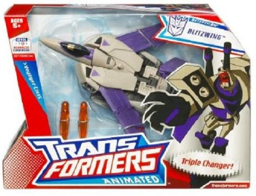 I highly recommendTransformers Animated Series Voyager Class 7 Inch Tall Robot Action Figure - Decepticon BLITZWING with Two Launching Missiles, Three Quick-Switching Faces and Triple Changer Mode (Robot Mode, Tank Mode and Fighter Jet Mode)